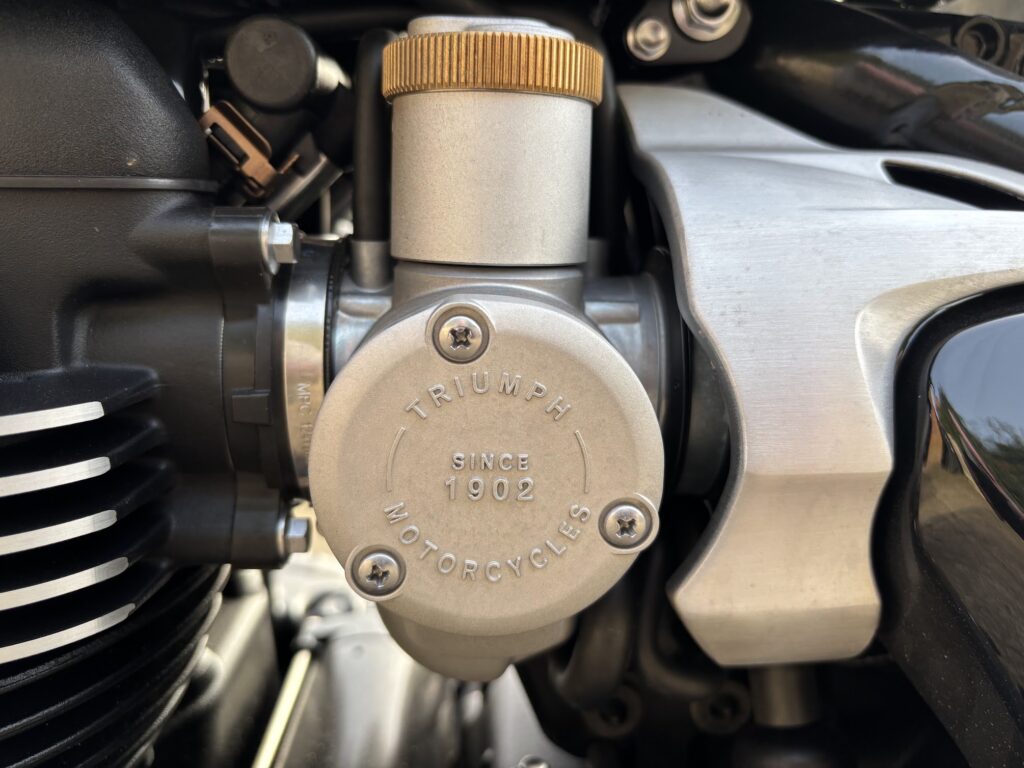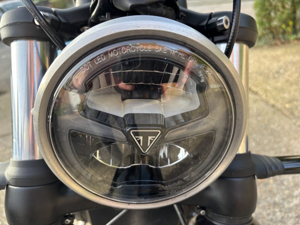 The LED headlight has been updated with a different daytime running light. It is nice to see that the Triumph ‘T’ logo is still present in the middle of the lamp.
